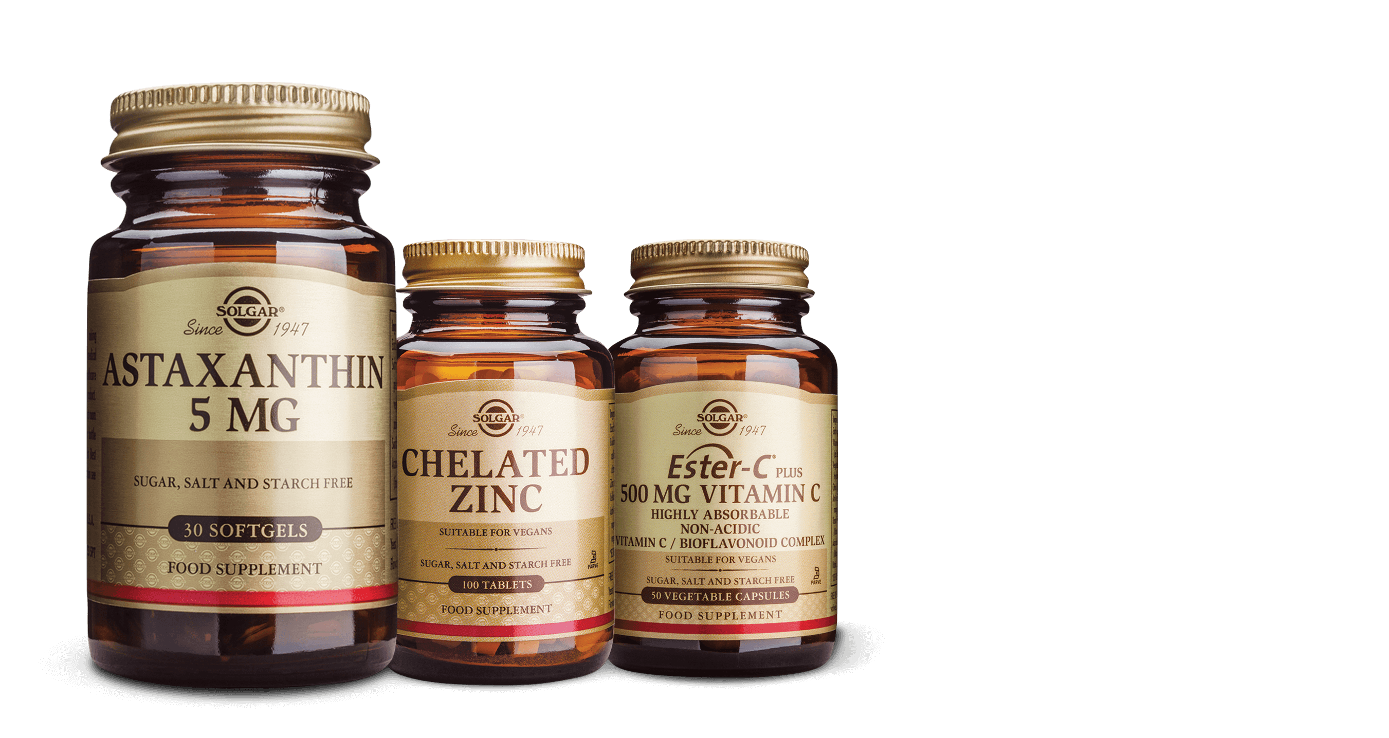 Vaša koža je izuzetno osetljiva na uticaj sunca. Za zaštitu joj je potreban Solgar Astaksantin u kombinaciji sa Solgar Cink helatom i Solgar Ester-C plus.